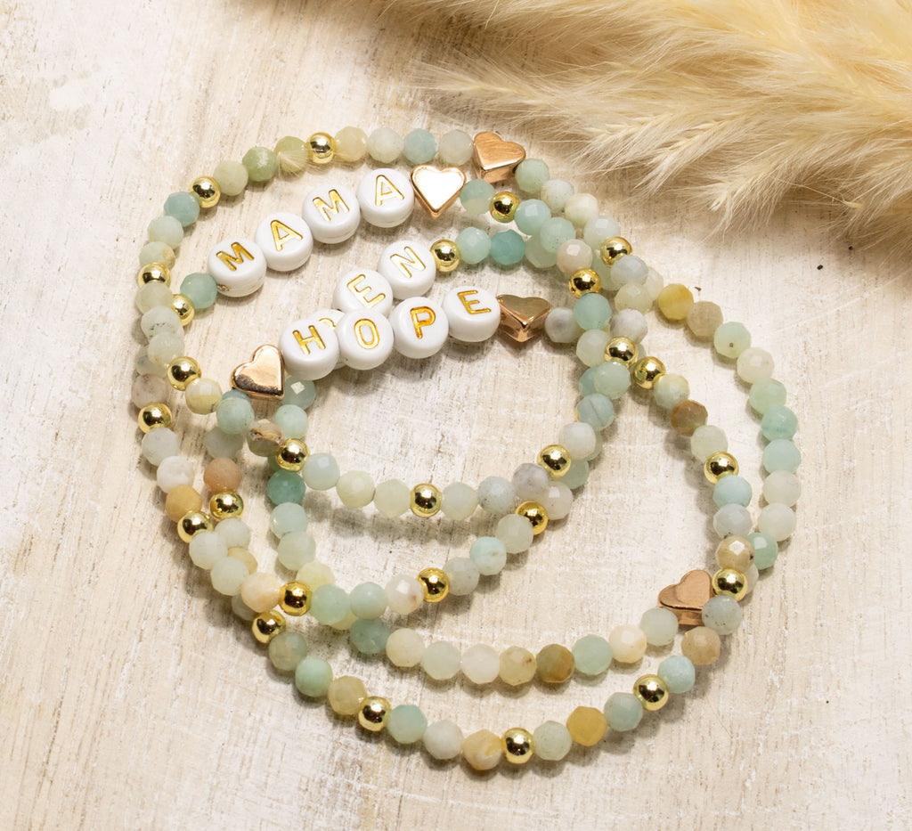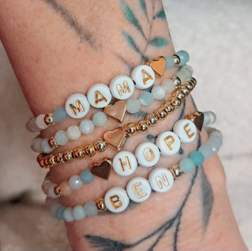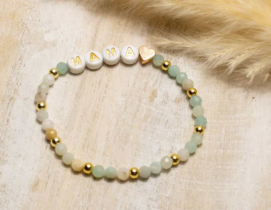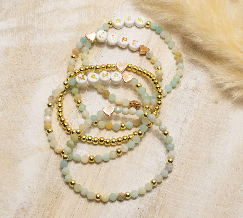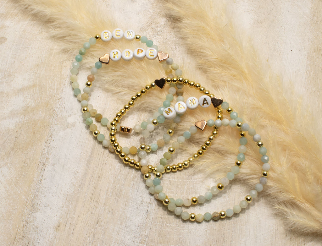 Amazonit Armband, Personalisiert , 18K vergoldete Perlen, Namensarmband