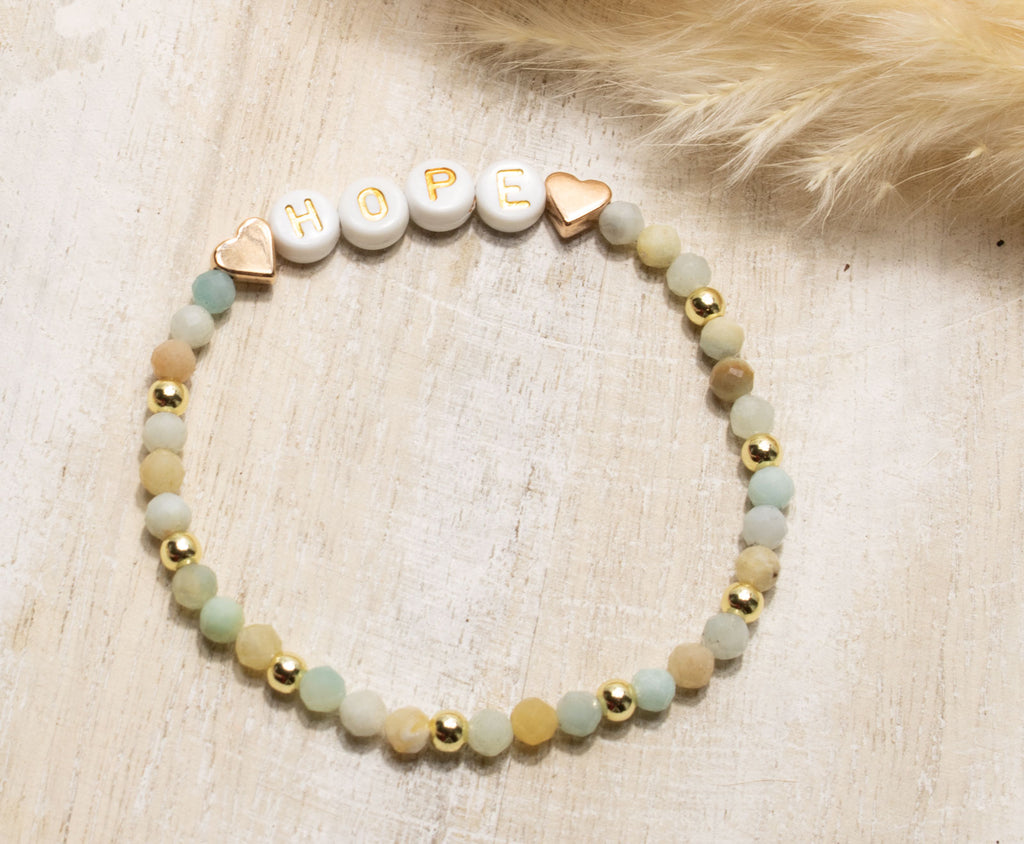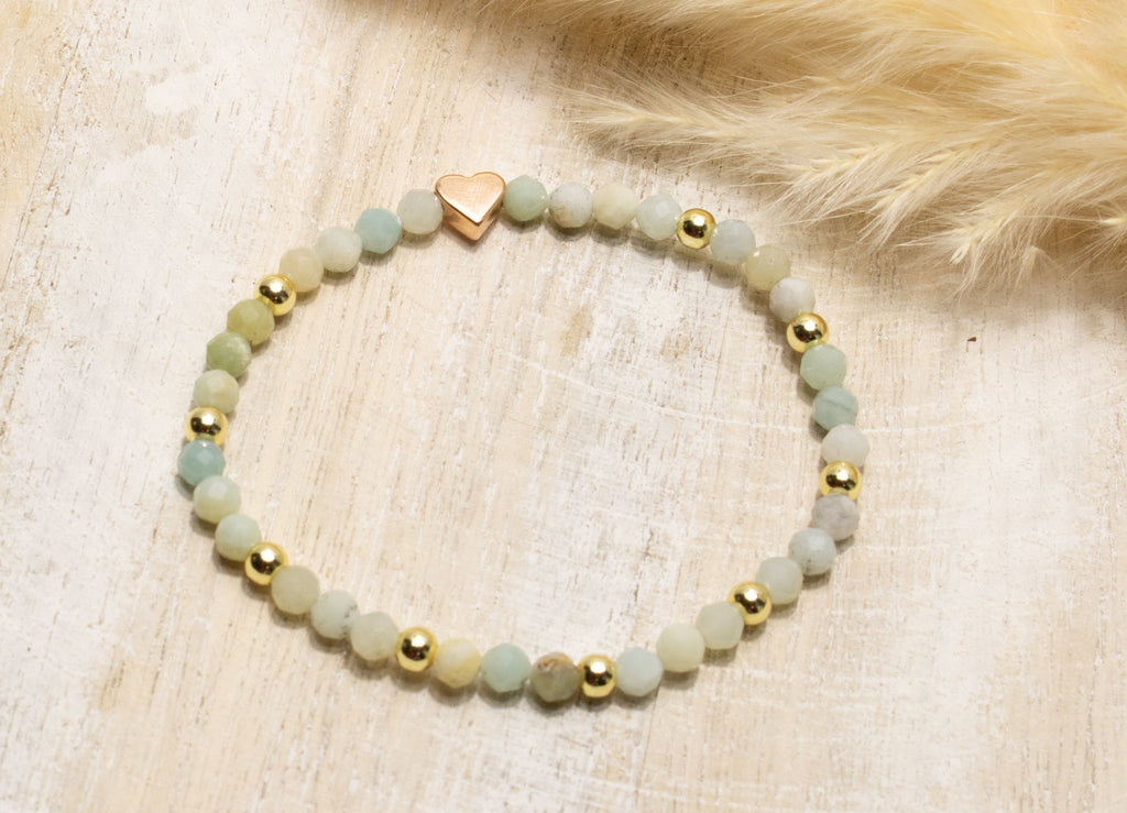 Traumhaft schönes Armband aus Amazonit Naturstein Perlen mit 18K vergoldeten Perlen und Herzchen.