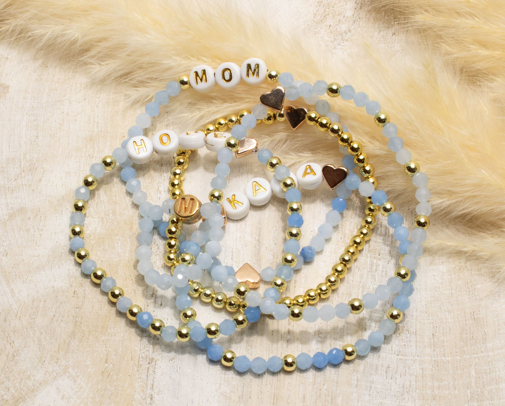 Aufgezogen ist das Armband auf elastischem Gummiband und wird in Deiner ausgewählten Wunschlänge angefertigt.