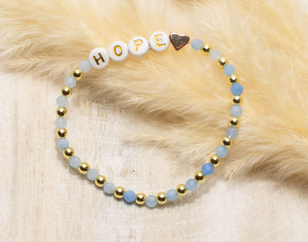 Das Armband besteht aus Aquamarin Natursteinperlen und 18K vergoldeten runden Perlen je nachdem für welche Variante ihr Euch entscheidet. Das Herzchen ist aus hochwertigem nickelfreiem Metall.